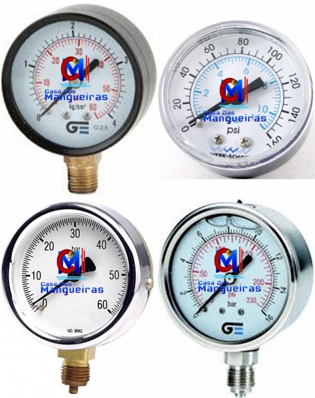 Manômetros pneumáticos em aço carbono ou aço inóx;