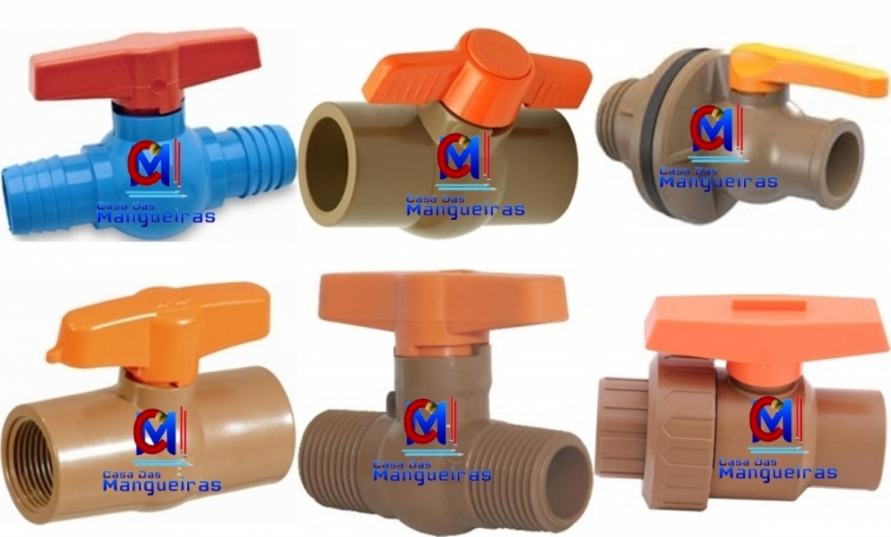 Registros em PVC rosca interna ou externa ou soldável, com ou sem flange, ou com escamas para mangueira, utilizados em sistemas prediais ou instalações de água fria. Também temos a Linha de conexões em PVC soldável e roscável.