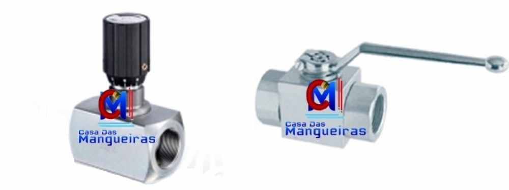 Válvulas de esfera alta pressão hidráulica 2 ou 3 vias, acionamento com alavanca, com rosca padrão NPT, nas medidas: 1/4", 3/8", 1/2", 3/4" e 1". Tamanhos maiores sob encomenda.