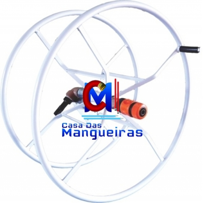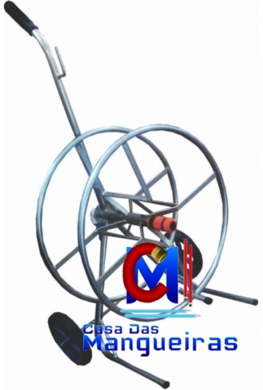 Suporte com carrinho para 30, 50 ou 100 metros de mangueira.