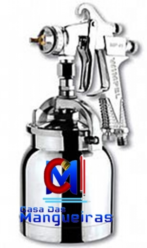 Pistola de pintura com reservatório de tinta embaixo. Desenvolvida para uso em oficinas de pintura e trabalhos industriais em geral. Adequada na aplicação de todos os materiais comuns de revestimento e acabamento. Bicos e agulhas em aço inoxidável, podendo ser utilizada com tintas a base de água.