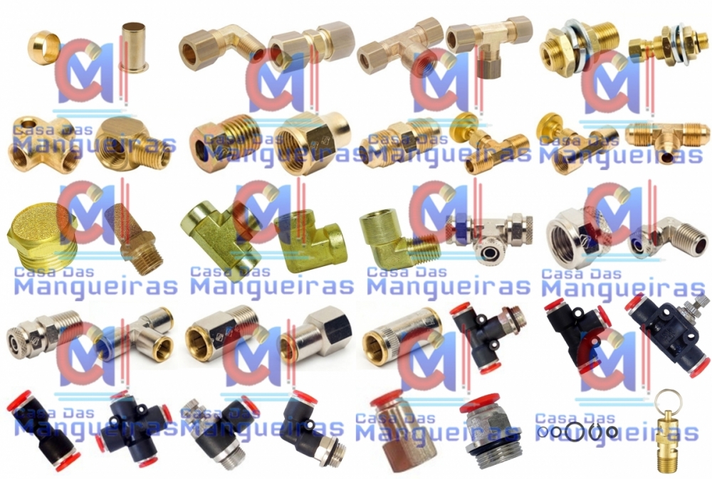 Completa linha de conexões e adaptadores para ar comprimido.