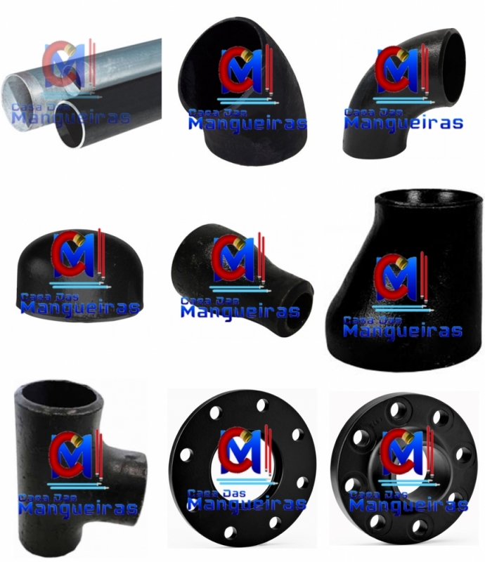Reducões concêntrica e excêntricas, Curvas, Cap (tampão), Tee, Ponta de rosca e Flanges de 1/2" a 8".